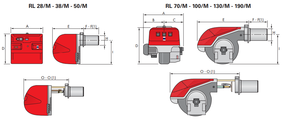 Seria de arzătoare RL/M acoperă o gamă de puteri de la 95 până la 2431 kW și a fost proiectată pentru utilizare pe o gama variata de cazanele de apa calda de joasa sau medie temperatură, generatoare de aer cald sau de abur, cazane de ulei diatermic, cuptor de paine-panificatie, uscator cereale, cabine de vopsire...
