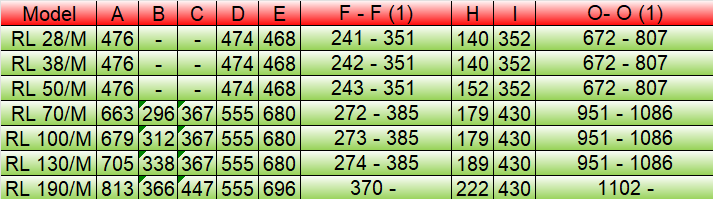 - Alimentare electrica trifazata pentru modelele RL38, RL50, RL70, RL100, RL130 si RL 190