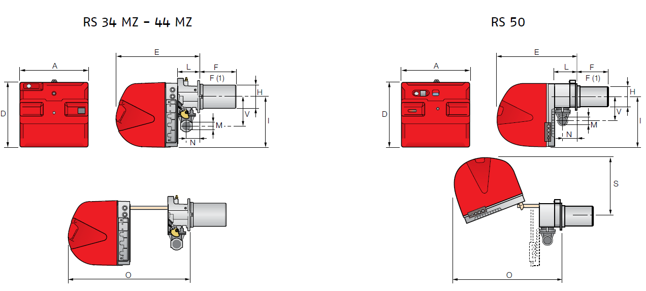 Arzătoarele din seria RS sunt arzătoare monobloc pe combustibil gazos, cu aer insuflat şi funcţionare în două trepte care au fost realizate pentru folosirea lor pe cazane de încălzire centrală cu apă caldă sau apă supraîncălzită, generatoare de aer cald sau pe cazane de abur. Sunt echipate cu tablou de comandă electronic cu auto-diagnoză: contorizează orele de funcţionare, identifică cauza disfuncţionalităţilor. Funcţionează cu zgomot redus ca urmare a faptului că circuitul de aer este realizat din materiale fonoizolatoare. Seria RS acoperă o plajă de puteri cuprinsă între 81 – 2290 kW