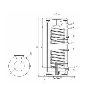 Boilerele BB NL2 sunt boilere de perete, cu două serpentine, destinate preparării apei calde menajere cu ajutorul agentului termic furnizat de două surse diferite (cazan+panou solar). Schimbătoarele de căldură sunt de tip serpentină fixă cu suprafață mare de schimb de căldură.